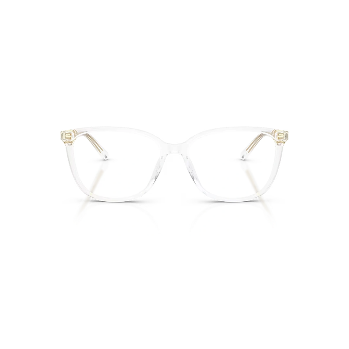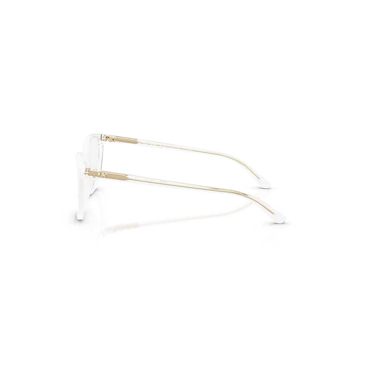 The clear transparent frame color adds a fresh and versatile touch, effortlessly complementing any outfit while showcasing Michael Kors’ signature blend of elegance and modern flair.