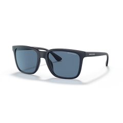 The Armani Exchange AX4112SU sunglasses showcase a modern rectangular frame crafted from lightweight injected material, finished in a sleek matte black tone. Fitted with grey-gradient-blue polyamide bio lenses, they offer both style and comfort with a touch of contemporary flair. Also available in a stylish dark blue variant, this unisex design blends durability with fashionable versatility, making it suitable for any occasion.