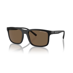 The Armani Exchange AX4145S sunglasses feature a sleek rectangular frame in lightweight injected material with a matte black finish. Fitted with dark brown solid polyamide bio lenses, they ensure durability and everyday comfort. Also available in a dark grey variant, this unisex design blends modern style with versatile wear.