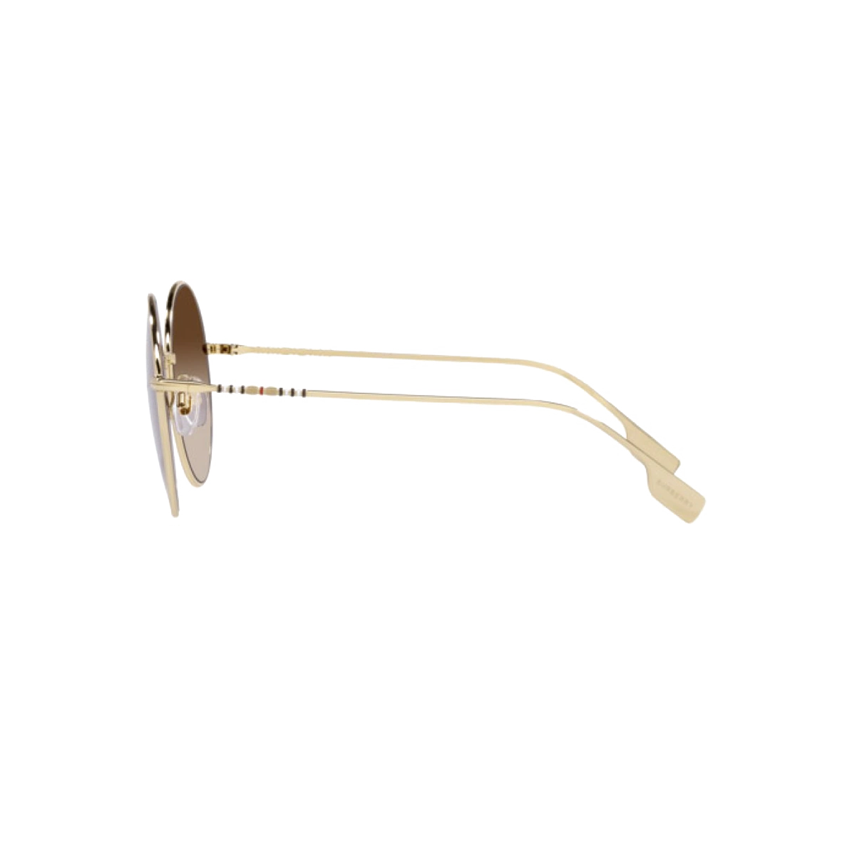 The Burberry BE3132 110913 sunglasses exude classic elegance with a modern feminine touch. Crafted from sleek light gold metal, these round frames feature soft brown gradient lenses that provide both style and UV protection. Designed for women who value sophistication, these sunglasses combine timeless British design with luxurious Italian craftsmanship, perfect for elevating any look.