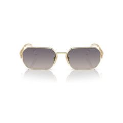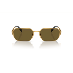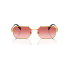 The Prada PR A51S ZVN30C sunglasses feature a stylish irregular-shaped pale gold metal frame for women. They are fitted with gradient blue mirror polyamide lenses that provide clear vision and UV protection. Made in Italy, these sunglasses combine luxury with a modern, eye-catching design, perfect for any fashion-forward look.