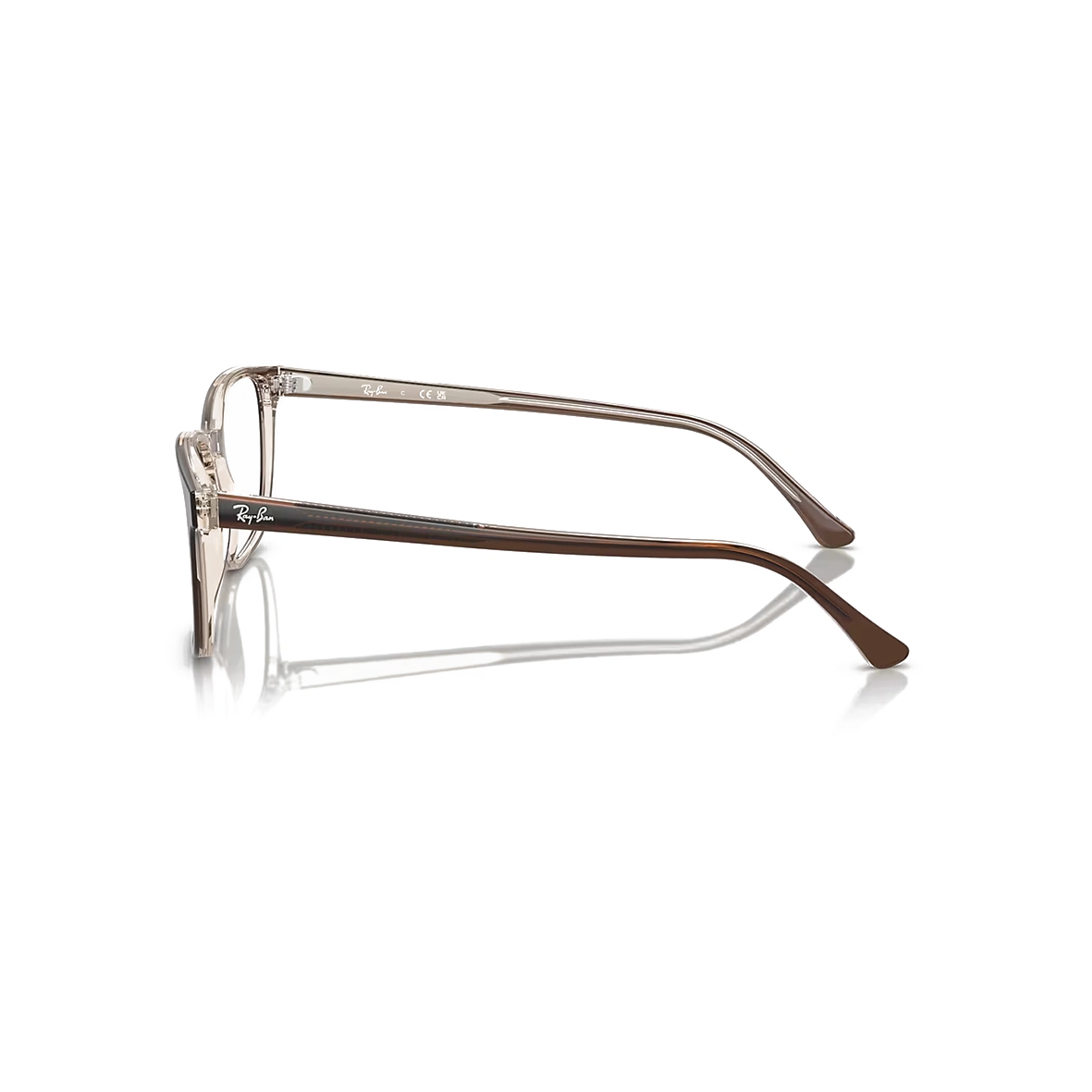 The Ray-Ban 0RX5418 eyeglasses combine contemporary flair with timeless design, featuring a softly contoured pillow-shaped frame crafted from high-quality acetate. The polished brown-on-transparent light brown color adds depth and sophistication, creating a refined yet approachable look suitable for any occasion.
